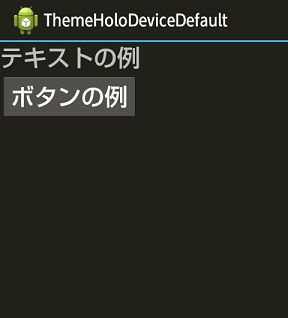 上記左端の DeviceDefault と中央の Holo は良く似ていますが、左端はアクションバー背景とボディ背景が真っ黒ではなく濃いグレーになっています。