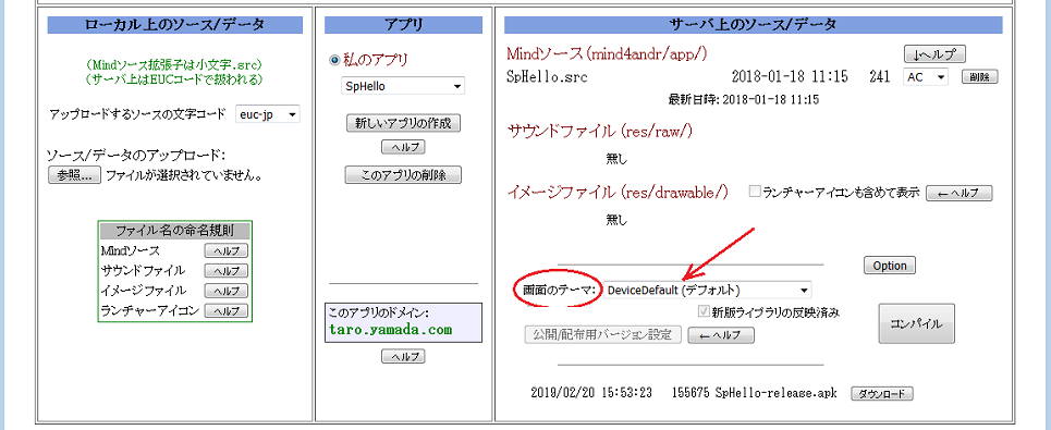 上記のプルダウンメニューによりテーマを選択したあと、「コンパイル」ボタンでコンパイルすることで適用されます。